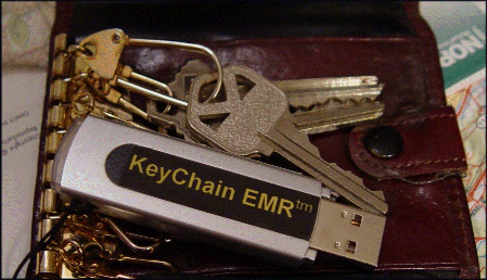 Why? Because many years worth or your patients’ EMR records can be kept on a Keychain MemoryStick, making it so easy to automatically carry to hospital rounding; …and because TSMR does not require a behemoth program to access your patient files on a medical ward computer and even print from there. Today, MS Word is practically the world’s typewriter. Flash drives now are up to 1 Gb in memory size, and are re-recordable, encryptable, lockable AND FAST, much faster than writing to a CD. Your most recent 4 years of patient records can easily fit on it. They have a metal case, measure 1/3 x 1 x 3 inches, and are sometimes sold as a key chain for your keys. Do the records need to be encrypted or otherwise secure? Of course. more about KeyChain EMR?